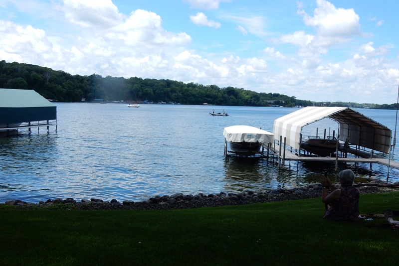 I’ve described various kinds of water features that are just what Beverely Nichols ordered, but he would never be able to top Nancy’s water feature – a lake. I had never connected Minnesota with Land O Lakes butter. We were invited to have our lunch in her lakeside garden, a delicious (literally) respite. Our tour was enjoying comfortable summer temperatures, but after walking through five sunny gardens that morning we were all ready to collapse in the shade, enjoy our box lunches, and relax with a view of the tranquil lake.