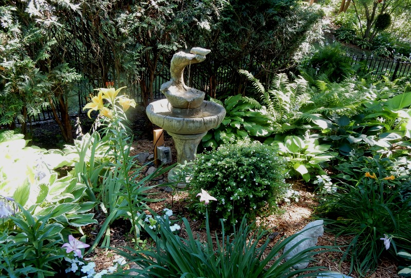 Rebecca – I am trying to figure out a fountain for my garden. I just visited a local garden and the gardener has a little stone patio nestled between her entry and the corner of the house which is sheltered with trees and shrubs. The stone patio includes a tiny pool with a spouting fountain – and it is all very small – but so cool, peaceful and welcoming.