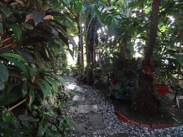 Inside the Lyman Plant House there is humid warmth and lush growth.